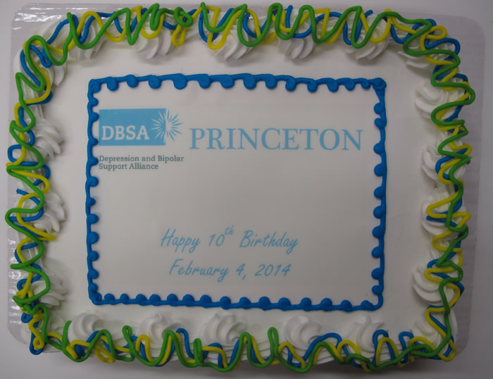 Last night DBSA Princeton marked ten years of support group meetings for the community, with 21 support group members and guests celebrating the occasion with cake, treats, and decorations contributed by those in attendance. Mark Stella, President of our chapter, and David Mizenko, a former President, spoke about the value of our support group in helping our members towards wellness. Chris Chernick, President of DBSA New Jersey, expressed his appreciation for what DBSA Princeton has accomplished for our community.